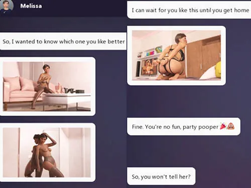 In Dirty Texts - Melissa's Secret, part of the Dirty Texts series, you step into the shoes of a man confronting a dilemma. Your girlfriend's 18-year-old daughter, Melissa, has begun posting provocative photos on JustFans. As the closest male figure in her life, it's your responsibility to intervene and guide her away from this decision. Whether or not you succeed depends entirely on the choices you make.