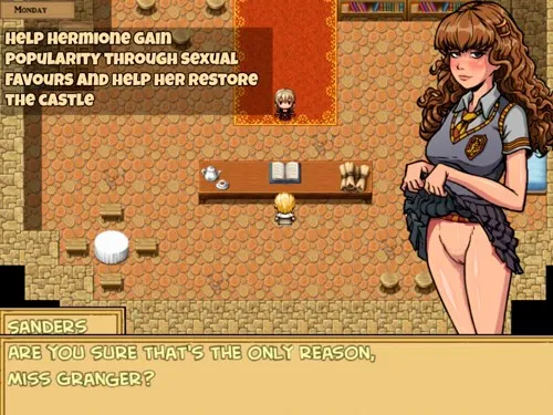 Hogwarts Restored - You might recognize this game as somewhat of a parody of Harry Potter. You are Professor Sanders, and you use the assets from Akabur's Witch Trainer. You've got to earn money and fame alongside with Hermoine Granger and other famous characters to restore Hogwarts castle. You will encounter many familiar faces, and they will help you along the way. It takes quite a bit of skill to get the people to do what you tell them to, but you have no choice if you want to save the castle.